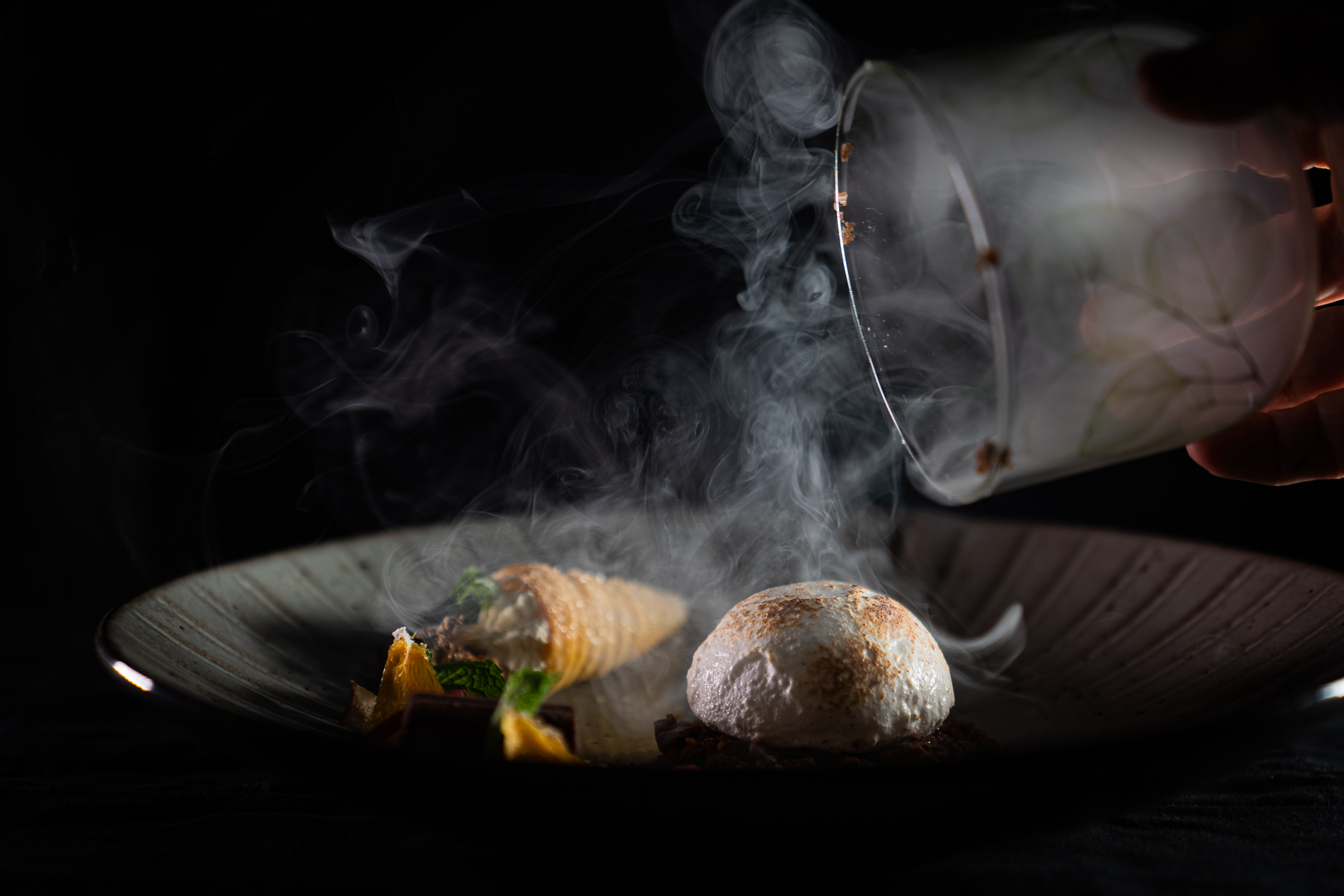 Chocolate Soil – Mousse – House Made Marshmallow – Raspberry Gel Chocolate – Edible Moss – Seasonal Berries – Dehydrated Fruit